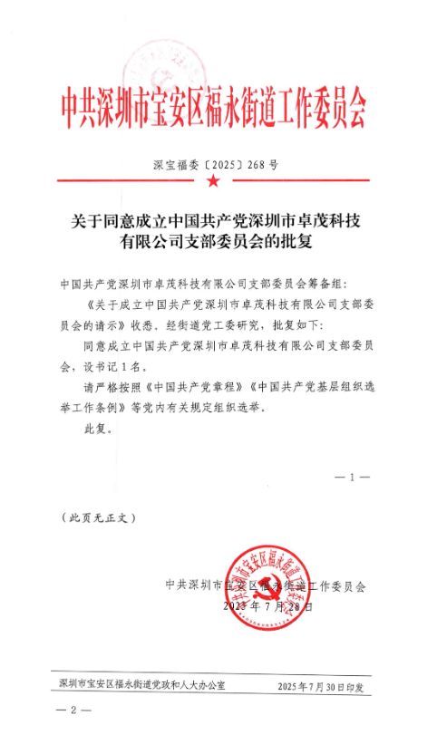 熱烈祝賀中共深圳市卓茂科技有限公司支部委員會成立啦!